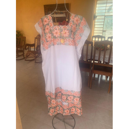 Hipil de tela de algodón bordado de renacimiento colores. Largo: 120 cm, Ancho: 68 cm.